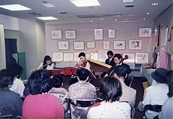 東京新宿NSビルで3月26日から31日まで開催された「神戸復興バザール」には、早稲田大学時代のクラスの学友、オーケストラの楽友、が次から次に来てくれて、まるで同窓会でした。来場された一般のお客様も「がんばってくださいね」と声を掛けてくださって次々にお買物をしてくださいました。思いもかけなかったほど販売することが出来て、正直、ほっと一息つけました。震災後、商売らしい商売が出来ていなかったのです。何よりうれしかったのは、「丸太やオリジナルコレクションコンサート」が音楽のお好きな方に喜んでお買い求めいただける、という確信が持てたことです。 夢のような東京での6日間が終わり、翌朝、ホテルを出て喫茶店でモーニングサービスのトーストを食べていました。会場に来て下さった友人、お買物をして下さったお客様、会場で販売の手伝いをして下さった知人、東京での販売を応援してくださった皆さんのお顔が思い浮かんだ、その時、感謝の気持ちで胸が一杯になって、涙が溢れてきました。帰路、新幹線で新大阪まで、そこから在来線に乗り換えて神戸に向かいました。電車が武庫川を渡って西宮に入った途端、周囲の景色が一変しました。地震で壊滅した街の惨状が眼に飛び込んできたのです。わずか6日間、東京に居ただけで、被災地の状況を忘れかけていたのです。涙が頬を伝いました。地獄から天国に行き、天国から地獄に戻ったのだ。自分が置かれている状況を嫌というほど思い知らされました。 しかし、「神戸復興バザール」は「丸太やオリジナルコレクションコンサート」が神戸以外の地域でも販売できる、という自信を私に与えてくれました。震災の惨禍のなかで「丸太や」が生き残る道は、それしかない。発表当初、夢としか思っていなかった全国展開を本当にやるしかない。先ず、京都で発表しよう。京都は呉服屋にとって最もご縁の深い所です。「丸太やオリジナルコレクションコンサート」の生みの親である横山喜八郎さんも、名和野要さんも協力してくださって、横山喜八郎さんのお姉さまがオーナーである京都岡崎の「ギャラリー大」で5月21日から28日まで「丸太やオリジナルコレクション コンサートIn 京都・岡崎」を開催いたしました。会場では大阪シンフォニカー時代の音楽仲間と一緒にフルート四重奏でミニコンサートも開きました。「丸太やオリジナルコレクションコンサート」を、なぜ私達が制作し、販売するのか、その理由を理解して頂くには、私達が演奏する音楽を聴いていただくことが一番だ、と考えたからです。 京都を皮切りに、それから、敦賀、長岡京、名古屋、大阪、岡山、茅ヶ崎、松本、清里、高山、大垣、高松、と全国各地で「丸太やオリジナルコレクション コンサート In ---- 」と銘うって発表会を開催して参りました。各会場では、現地の音楽仲間に共演して頂いてミニコンサートも同時に開催いたしました。夢だった「丸太やオリジナルコレクションコンサート」の全国展開を実現することが出来たのです。 |