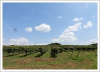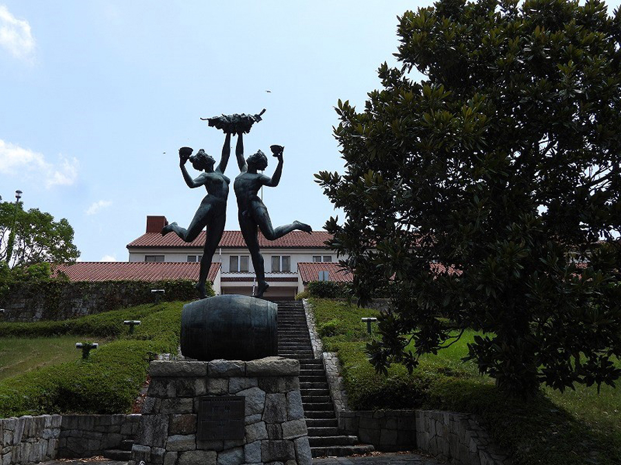 50年前、私が呉服屋になった頃、呉服の商売は外商が中心でした。私も毎日、風呂敷に商品を包んでお客様のお宅を訪問させて頂いていたのですが、30年以上も前だったか、いつもどおり車でお客様のお宅を回りながら押部谷の辺りを走っていて農業公園の案内板が目に入りました。当時、農業公園が出来たという話は耳にしていたので、どんな所なのだろうと興味を持って中に入ったのです。その頃、農業公園はワイン城と呼ばれていて、まるで南仏の葡萄畑の中にそびえるお城のようで、ここが日本の、神戸なのか、と感動しました。後日、あらためて家内や子供と一緒に遊びに行って、車で来たから駄目だけど、いつかもう一度、バスかなにかに乗って再訪して、レストランで神戸ワインを飲みながら神戸ビーフを食べたい、と思ったのですが、叶わぬ夢でした。あれから30年以上が経って、夢よ、もう一度ではないですが、久し振りで散歩を楽しむためにこうべアグリパーク(旧農業公園)を訪れました。駐車場に車を停めてこうべアグリパーク(旧農業公園)の建物を見上げて、そうだ、ここだったのだ、と感慨ひとしおでした。広い敷地に植えられた葡萄の木は、ちょうど葡萄の房が垂れ下がっていて、実りの秋がすぐそこだと感じたのです。