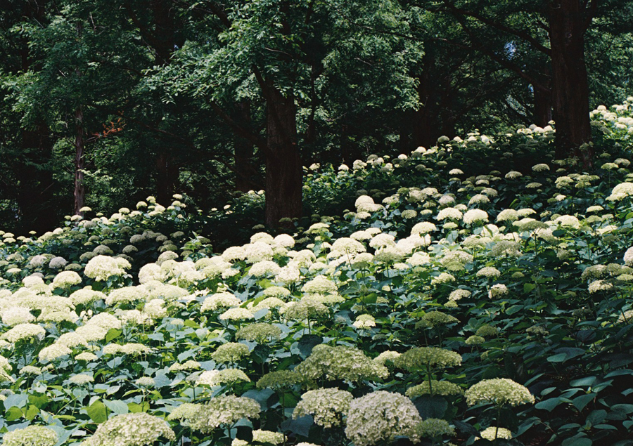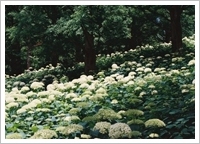 当日、森林植物園に出向いて、会議室で真野響子さんとお話をすると、とても気さくで気っぷの良い方で、「あなた、呉服屋さんなのに、なんで楽譜柄の浴衣をきているの?」と聞かれて、「音楽が好きなので、音楽をモチーフにしたオリジナルの着物を作っているのです」とお答えしました。それが機縁で、その後、何度も森林植物園に散歩に出向いたのですが、真野響子さんのアドバイスで、みるみる森林植物園が人気スポットになって、とりわけ春の紫陽花、秋の紅葉のシーズンは来園者でいっぱいなのです。 |