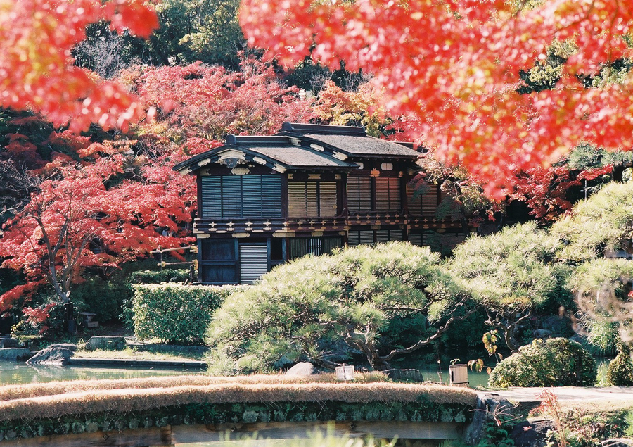 相楽園は「丸太や」から北へ徒歩10分ほどの山の手にある元神戸市長小寺謙吉氏の先代泰次郎氏の邸宅跡です。神戸市内のど真ん中に在って、周囲の喧騒とは隔絶した閑静な庭園です。春は平戸つつじ、秋は紅葉が見事ですが、私は、6月から7月にかけて、園内の蘇鉄が若葉に萌える頃が大好きです。私の自宅の庭にも、蘇鉄が一本植わっているのですが、梅雨の中頃、幹の真ん中に新芽が噴き出して、日一日と膨れ上がって、梅雨明けと同時に若葉が萌え切ったのです。きっと蘇鉄は、梅雨の間に地中の水分を十二分に吸い込んで、梅雨が明けて、太陽が燦燦と照りだす、まさにその時に、太陽の光を一杯浴びるために、葉を全開したのだ、と思いました。蘇鉄は、生命力の象徴として振袖の柄に描かれることがあるのですが、その時、私は蘇鉄の生命力を実感したのです。