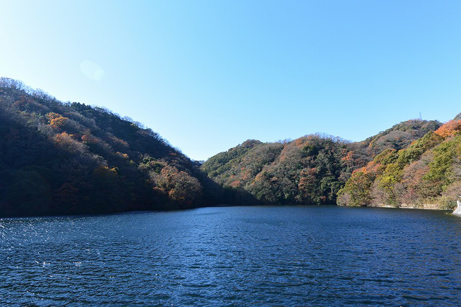 烏原貯水池に行くのに、私は、神戸市内中心部の最も北を東西に走る山麓線沿いのコインパーキングに車を停めて歩いていくのですが、すぐに急こう配の坂道で、眼下に街並みを見下ろせるのです。しかし大袈裟ではなく、息も絶え絶えになって、やっと登りつめると、目の前に水を満々と湛(たた)えたダム湖が見渡せて、まるで別世界に来たようで、ここが神戸の街中なのか、と感動するのです。烏原貯水池は、周囲をグルっと回遊できる遊歩道があって、余り起伏の無い散歩には最適のコースなのですが、考えれば当たり前、貯水池自体が水平だからです。初めて歩いた時、大きな楓の木がたくさんあって、紅葉したらさぞかし綺麗だろうと思って、秋にもう一度来てみたら、圧巻でした。私の紅葉十選には間違いなく入ります。 |