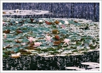散歩を始めて、三木市内に三木山森林公園があると知って、行ってみたらいっぺんで気に入りました。とにかく広々としている。視界を遮るものが何もない、というのは唯それだけで気持ちの良いものです。広い原っぱの中に池があって、初夏には睡蓮が咲き始めるのですが、殊の外(ことのほか)美しいのです。広場に添うように小高い山があって、その山道が散策路になっていて、山頂の辺りに茶室があるのですが、休憩室もあって、いつもそこでお弁当をひろげるのです。木立を吹き抜ける風が気持ちよくて、至福のひとときです。 |