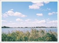 初めて加古大池公園を訪れた時は真冬だったのですが、魚釣りをされている方がたくさんいらっしゃって、夏に来た時はウインドサーフィンを楽しまれる方がおられたのには驚きました。とにかく散歩するために来た私たちにも、広い池の周りが遊歩道になっていて、たっぷり散歩が楽しめるのです。 |