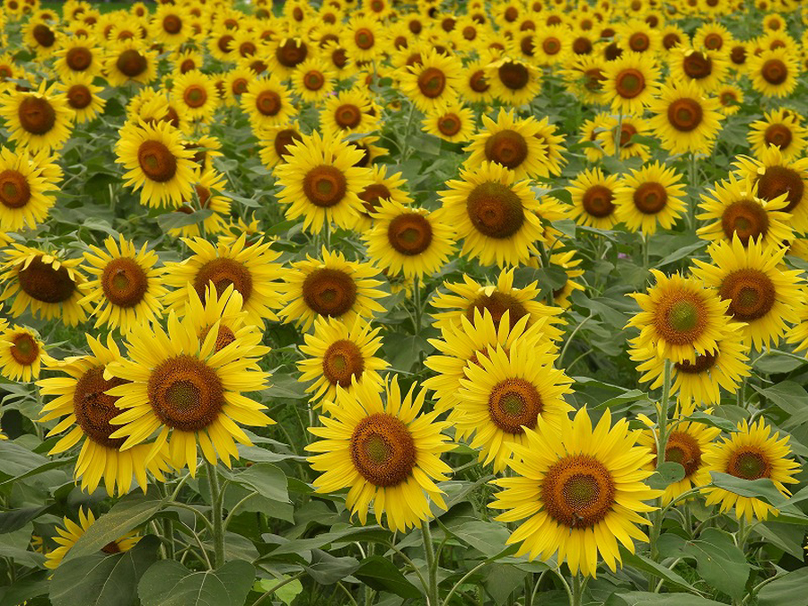初めて立ち寄ってみると、駐車場のすぐ横、元々は田圃(たんぼ)だった辺り一面にヒマワリが咲いていました。ヴィットリオ・デ・シーカ監督、ソフィア・ローレン、マルチェロ・マストロヤンニ主演の映画「ひまわり」。涙茫茫の名画でした。 |