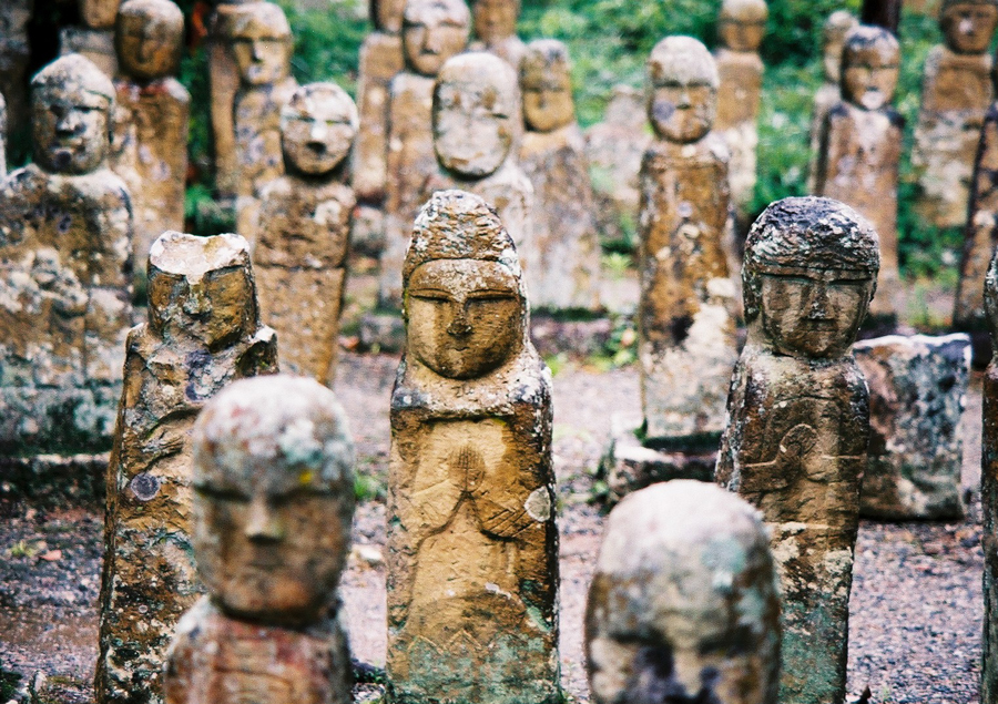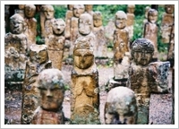 決して大きくもなく、大層でもないお寺ですが、落ち着いた佇(たたず)まいで、奥に沢山の石仏が並べてありました。その一つ、一つが、得も言えぬ表情を湛(たた)えていて、なぜか理由(わけ)もなく心が和(なご)むのです。普段の暮らしにはない時間が流れるのです。もう何度も通ったのですが、また行きたくなるのです。 |