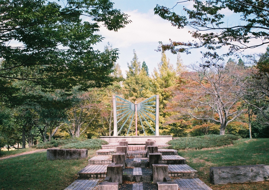 翌、1995年1月17日、阪神淡路大震災が勃発。神戸一全(かんべはじむ)さんは、直後、西脇市から兵庫県庁に駆けつけられたのですが、その後、弊店に立ち寄ってくださって、「丸太やさんが無事で良かったです」というメモ書きをポストに入れてくださいました。その後、社員の谷口さんが店の状態を確認するために見に行ってくださって、電話で「店は大丈夫でした。神戸さんが、丸太やさんが無事で良かったです、という書置きをしてくださっていました。」と知らせて下さって、本当に勇気づけられました。この非常事態に、弊店を見守ってくださる方がいらっしゃることに。西脇市は、東経135度、北緯35度に位置していて、日本列島の東西、南北の中心に当たるということで、「日本のへそ」を自称しています。そのシンボルが「日本のヘそ公園」です。近くに「日本のへそ日時計の丘公園」もあって、日本標準時に因(ちな)んで園内には意匠を凝らした日時計が色々あって楽しいです。 |